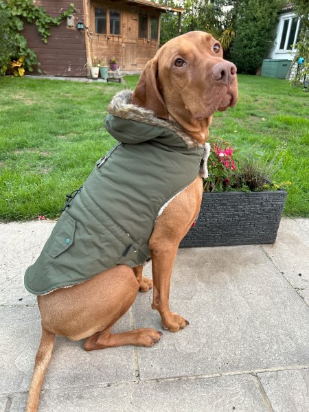 The Lennox Winter Coat is perfect for your furry friend during chilly days! Made from cotton with polyester fiber filling and finished with fleece on the inside for extra warmth. With Velcro, waterproof and a belly strap for a good fit. Includes a hood, leash opening, and accessory ring