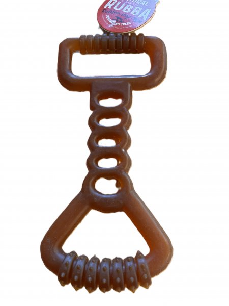 This play ball is made of 100% natural rubber and has handles to encourage play.